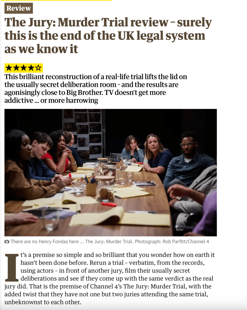 BAFTA-WINNER 2025 documentary-drama hybrid exploring and challenging the UK legal system.